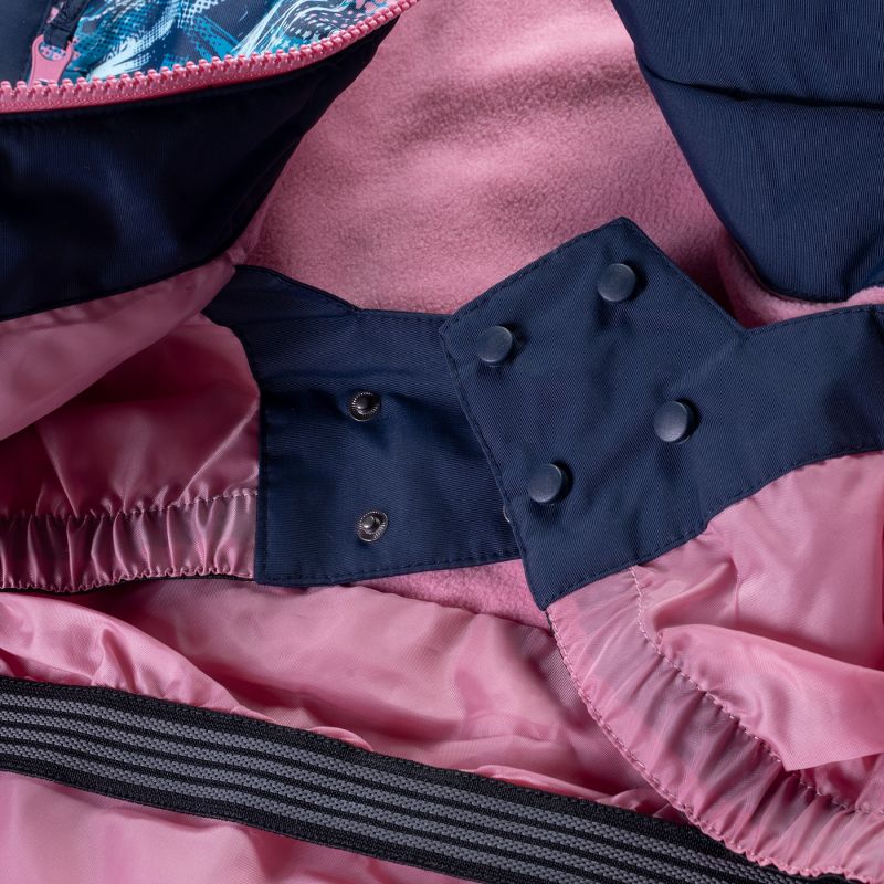 The Brugi 3AK5 children's ski jacket features a 5000 mm H2O waterproof membrane, allowing for skiing in light precipitation. Taped seams seal the seams, further protecting the jacket from getting wet. A ski pass pocket is a major plus, making it easier to use the ski lift. The comfortable, insulated hood is easily detachable. A powder skirt prevents snow from getting under the jacket and retains warmth. An additional microfleece lining enhances thermal comfort.