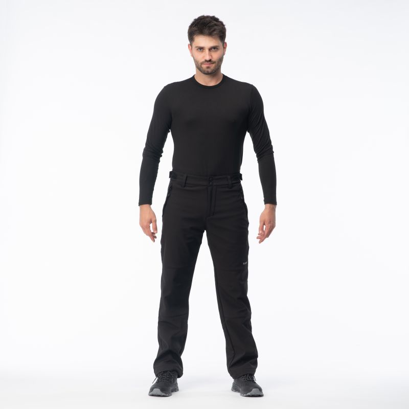 Key features: Softshell trousers with a membrane: waterproofness 10,000 mm H2O, breathability 1000 g/m²/24h DWR coating Stretch Microfleece finish Two zippered pockets Back pocket Reflective elements Adjustable waist Belt loop Technical specifications: Material composition: 94% polyester, 6% elastane