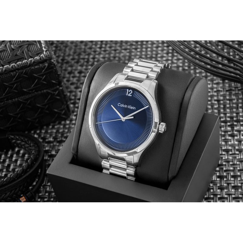 A distinctive form, meticulously crafted details, and a carefully considered color palette – this model simply makes an impression. Solid construction and top-quality materials are the foundation of Calvin Klein's uncompromising quality. Precise hands and distinctive finishes demonstrate craftsmanship that requires no confirmation. The Calvin Klein logo on the dial, bracelet, and crown are subtle yet expressive accents that define class. A watch created for men who value the power of detail and reliability in every situation.