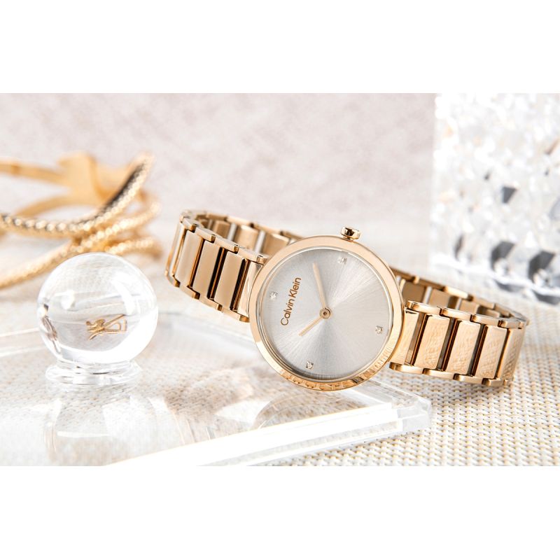 Delicate hands and a dial that softly reflects light – all together create a composition that's hard to take your eyes off. High-quality materials, meticulously crafted details, and perfectly coordinated colors – a Calvin Klein watch wears like jewelry, and every glance at the wrist becomes an aesthetic experience. The design is complemented by the logo on the dial, the bracelet clasp, and the CK logo on the crown.