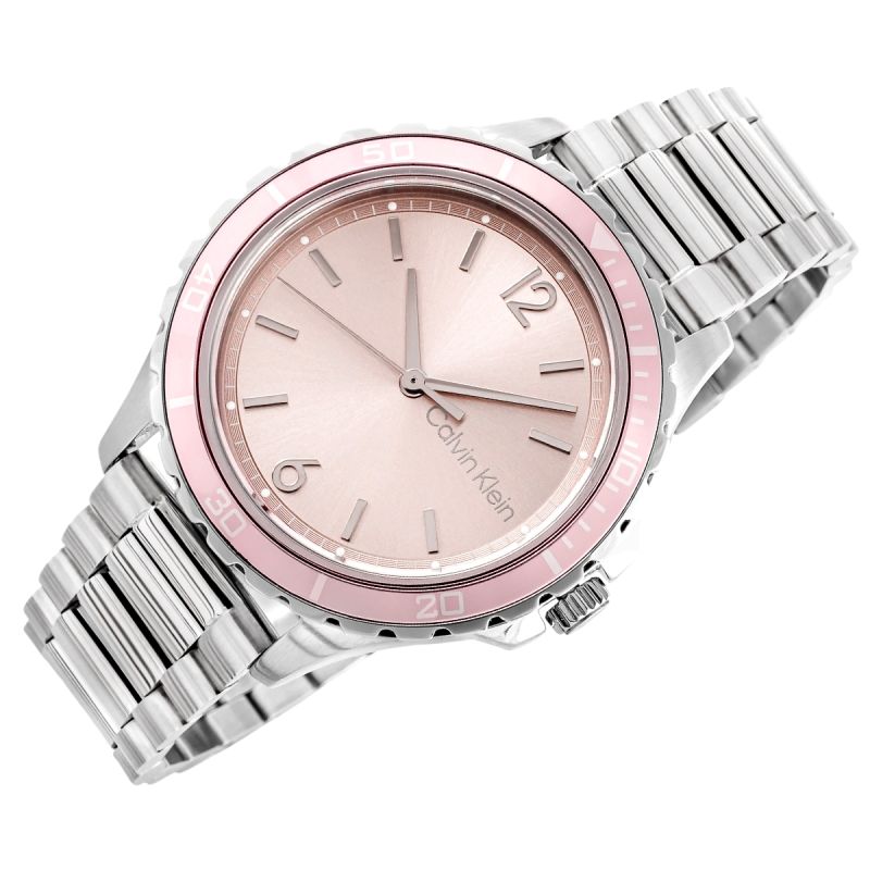 Precise hands, raised indexes, and a dial that softly reflects light – all combine to create a composition that's hard to take your eyes off. High-quality materials, meticulously crafted details, and perfectly coordinated colors – a Calvin Klein watch wears like jewelry, and every glance at the wrist becomes an aesthetic experience. The design is complemented by the logo on the dial, the bracelet clasp, and the CK logo on the crown.