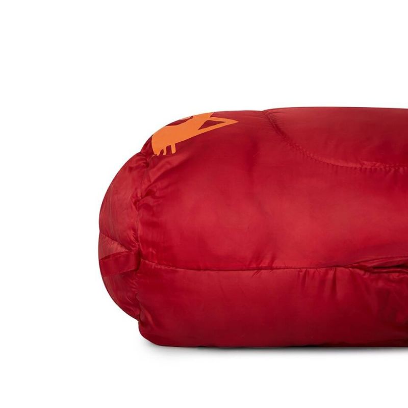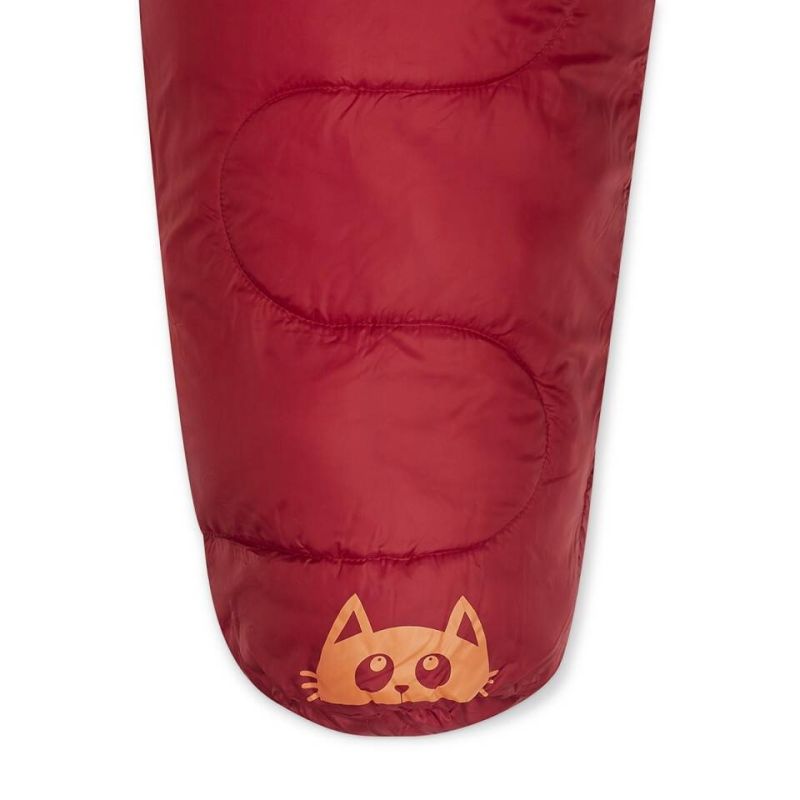 The sleeping bag is distinguished by its colors in shades of red and orange, which gives it a dynamic, childish character.