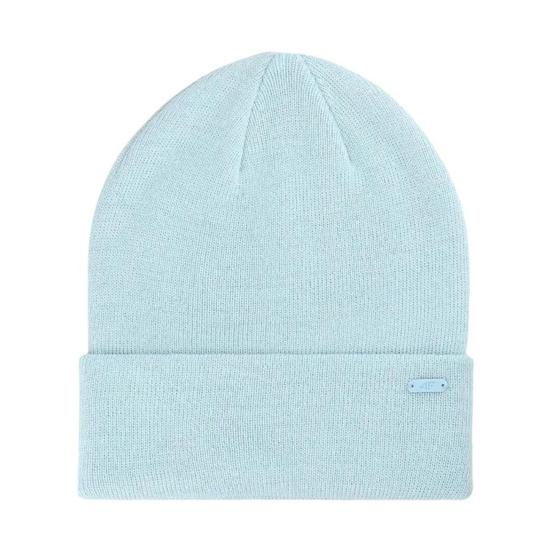 4F U622 Light Blue Cap 4FWAW25ACAPU622 34S This cap helps you stay warm on cold days. Small logo. Soft material. Flexible cut with a rolled-up brim. Specifications: Material: 100% acrylic Head circumference: 56-60 cm