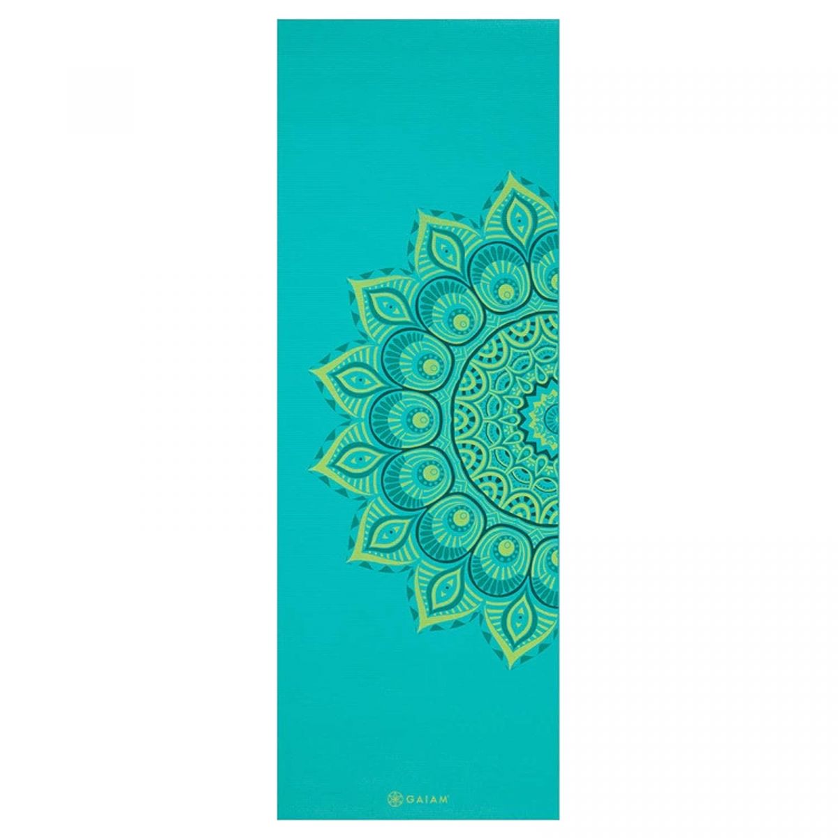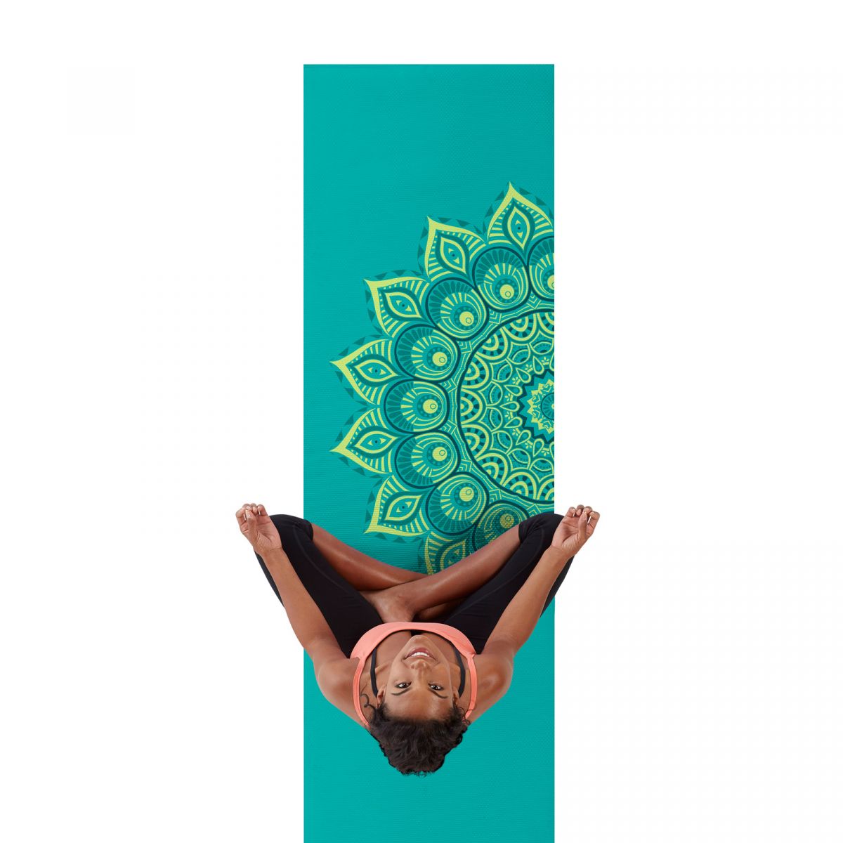 This azure green yoga mat is 6mm thick, providing additional cushioning. It supports your limbs during more challenging and complex exercises. The mat is made of a non-slip material with good grip, making it easy to stay in place. The mat is made of PVC, a harmless material that is free of latex and phthalates. It's perfect for both studio and meditation. It's easy to clean and comes with a lifetime warranty.