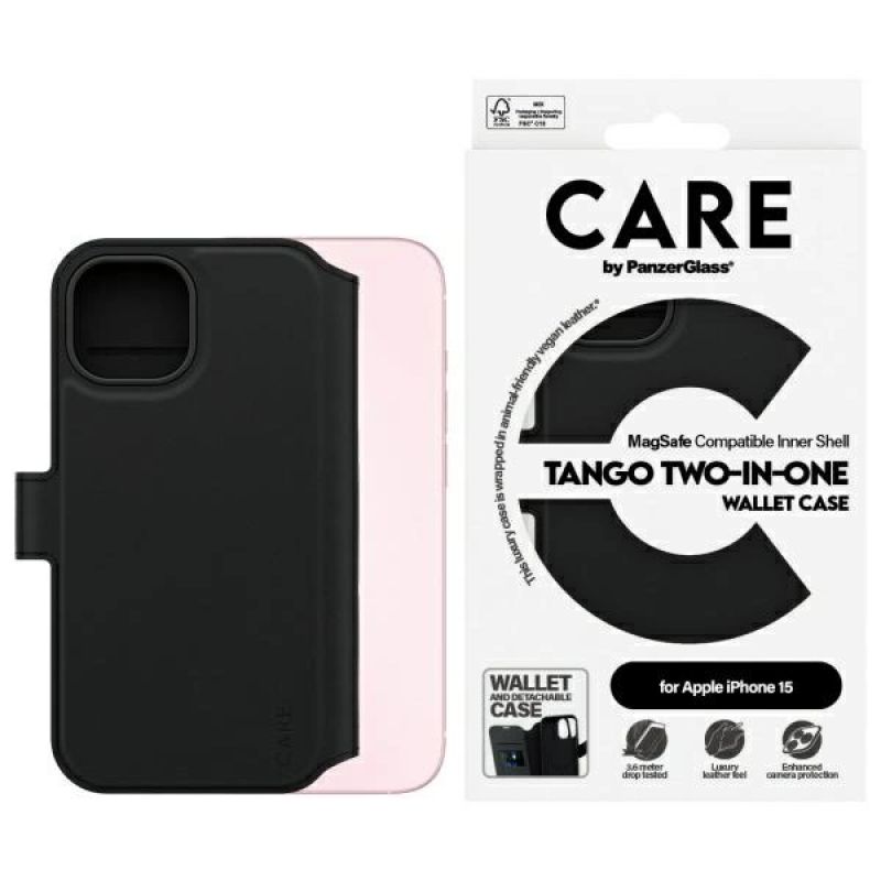 CARE by PanzerGlass Feature Tango 2in1 Wallet MagSafe Case for iPhone 15 - Black