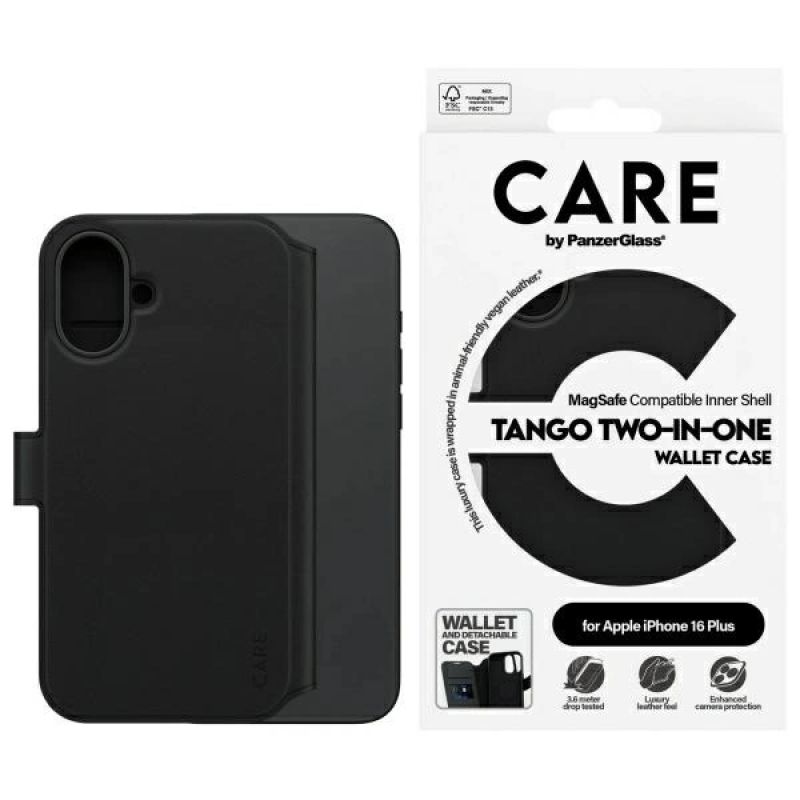 CARE by PanzerGlass Feature Tango 2in1 Wallet MagSafe Case for iPhone 16 Plus - Black