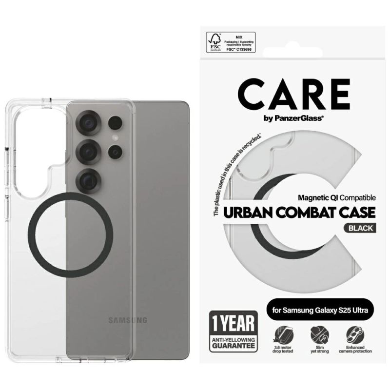 2. CARE by PanzerGlass Flagship Urban Combat Black QI Case for Samsung Galaxy S25 Ultra - Transparent