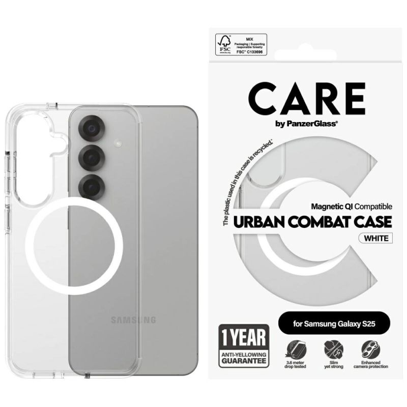 CARE by PanzerGlass Flagship Urban Combat White QI Case for Samsung Galaxy S25 - Transparent