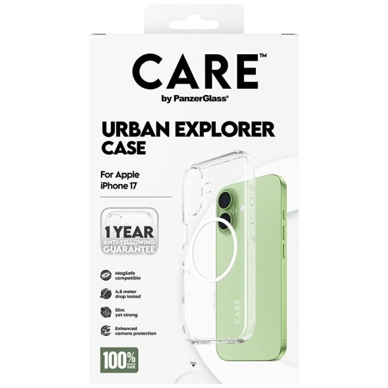 CARE by PanzerGlass Flagship Urban Explorer Case w. White MagSafe for iPhone 17 - Transparent