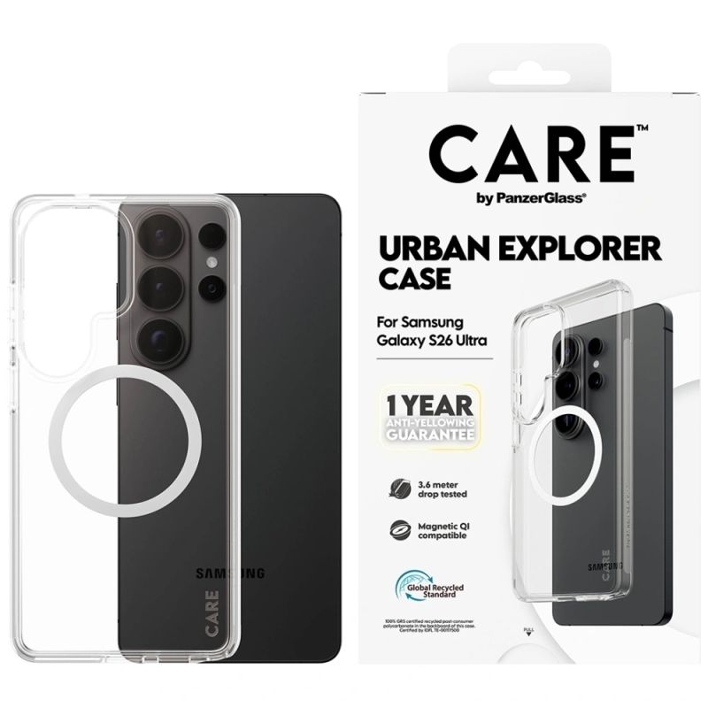 CARE by PanzerGlass Urban Explorer Transparent Case w. White Qi for Samsung Galaxy S26 Ultra - transparent