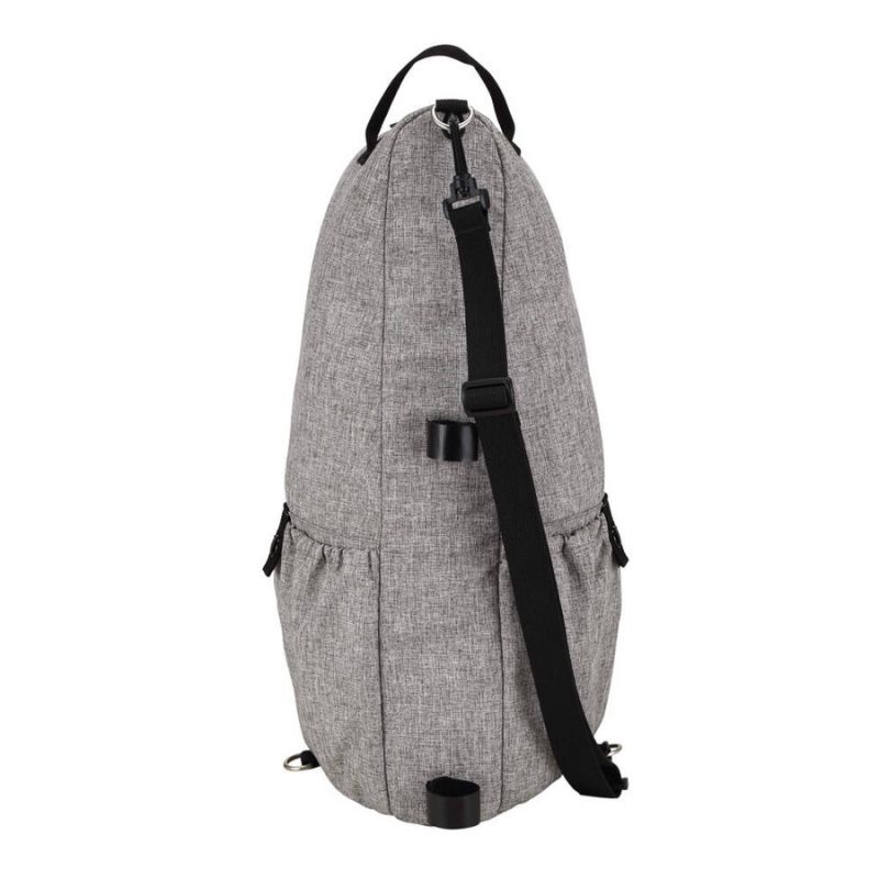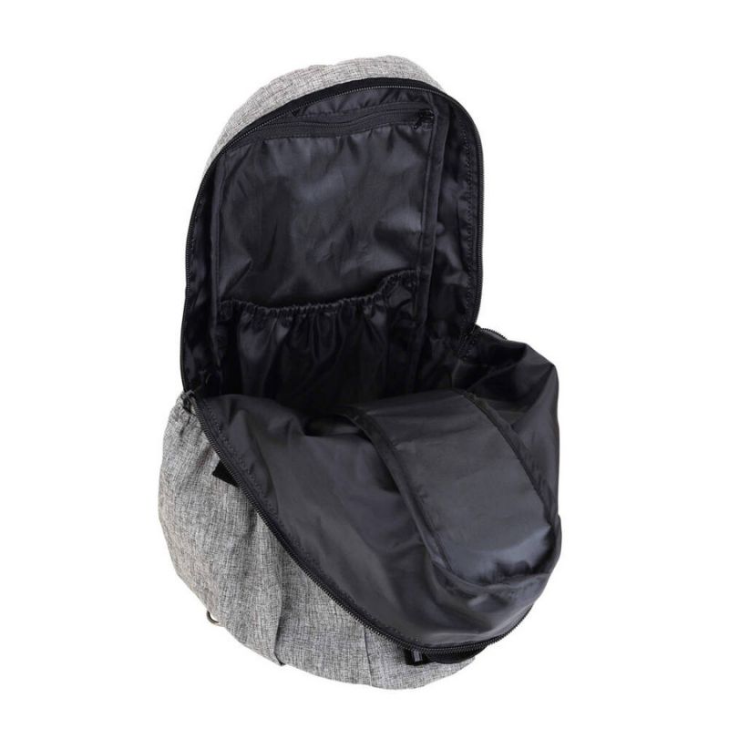 The backpack has an adjustable strap, a carrying handle, side pockets, a zipper pocket and special mounting hooks.