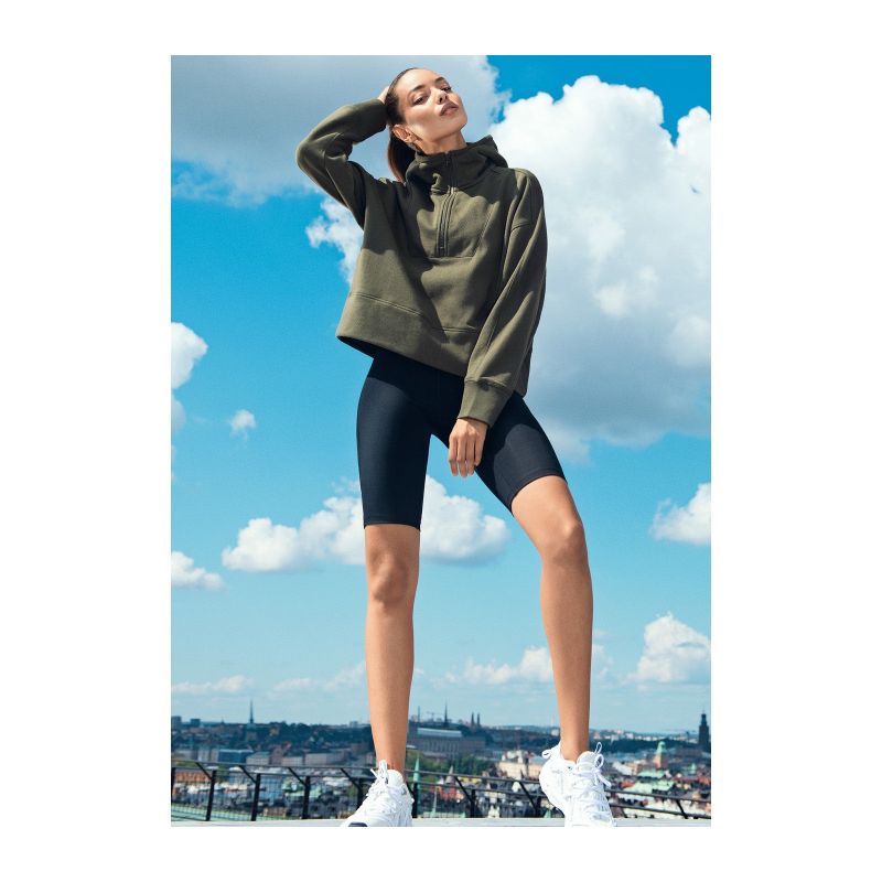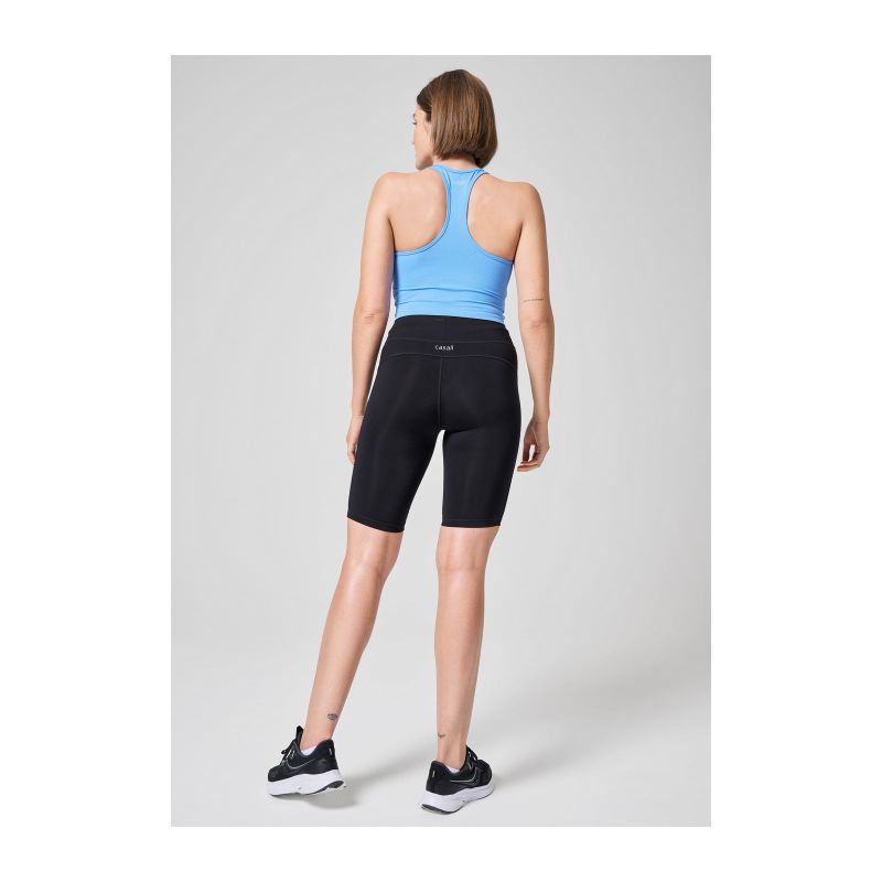 The CASALL High Waist Bike Tights are made of quick-drying recycled fabric with a wide 8cm waistband. Their high elastane content makes them incredibly flexible, perfect for both squats and your favorite yoga moves. Their fashionable, short leg length is perfect for outdoor summer workouts. Made from recycled fabric with a slightly shiny finish and a soft feel, they wick away moisture and allow for freedom of movement. Made in Greece. Recommended Washing: We recommend washing at 40°C. Functional materials should not be washed with fabric softener, as it impairs their elasticity and ability to wick away moisture. Excessive temperatures, spinning, or tumble drying can damage the garment's details.