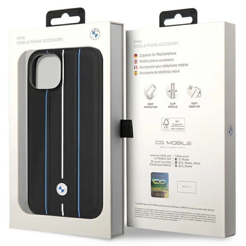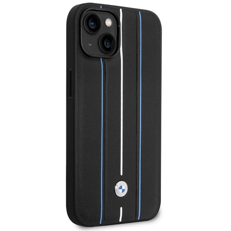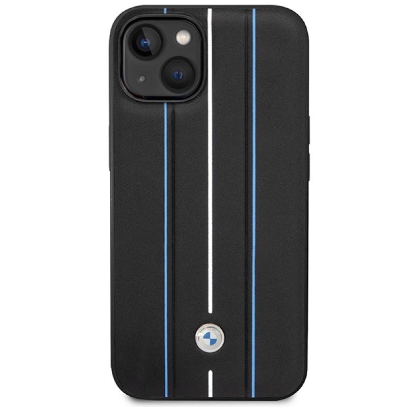 Case BMW BMHCP14S22RVSK iPhone 14 6.1" black/black hardcase Leather Stamp Blue Lines