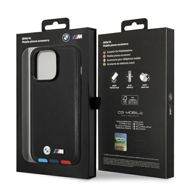 Case BMW BMHMP14X22PTDK iPhone 14 Pro Max 6.7 "black / black Leather Stamp Tricolor Magsafe