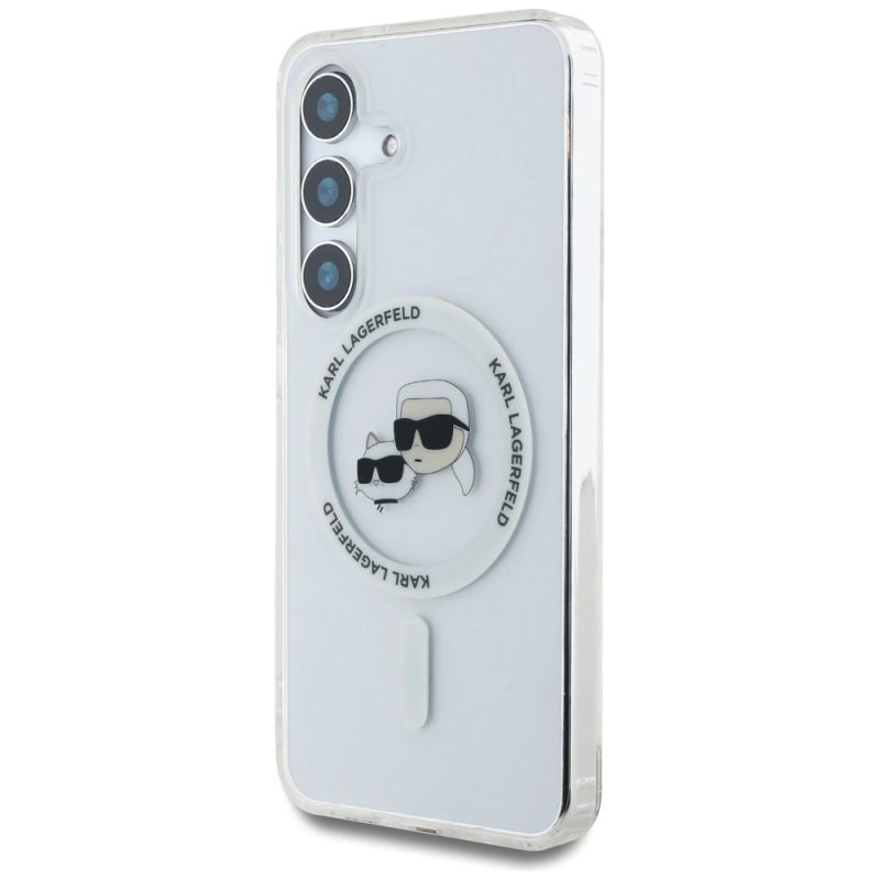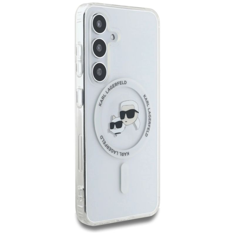 2. Case Karl Lagerfeld Button Karl & Choupette Heads Printed Logo MagSafe Samsung Galaxy S25 Plus white