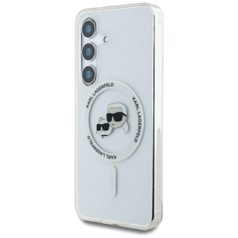 2. Case Karl Lagerfeld Button Karl & Choupette Heads Printed Logo MagSafe Samsung Galaxy S25 white