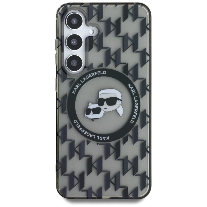 Case Karl Lagerfeld Button Karl&Choupette Heads On KL Pattern MagSafe Samsung Galaxy S25 black