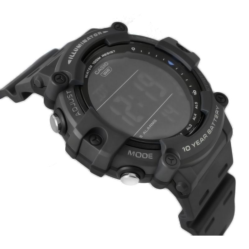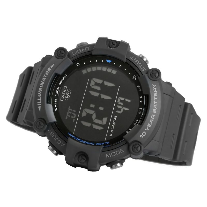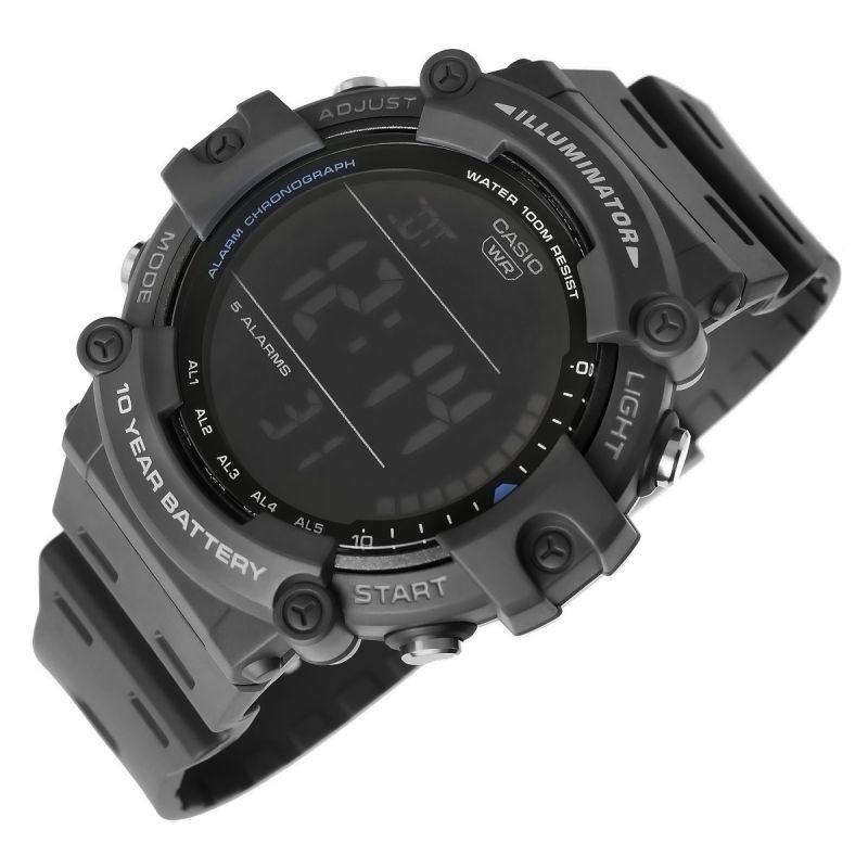 - Dial: Quartz. Automatic Calendar: Advanced date display that automatically adjusts the date for shorter months; Timer: Countdown from a preset time to zero; 12/24-hour clock: 12- and 24-hour display; Stopwatch: 1/100th of a second; Dual-Time: 2 independent time settings; Alarm: The watch can beep 5 times a day, including a snooze mode and an hourly timer; Illuminator: LED backlight; Battery life: 10 years