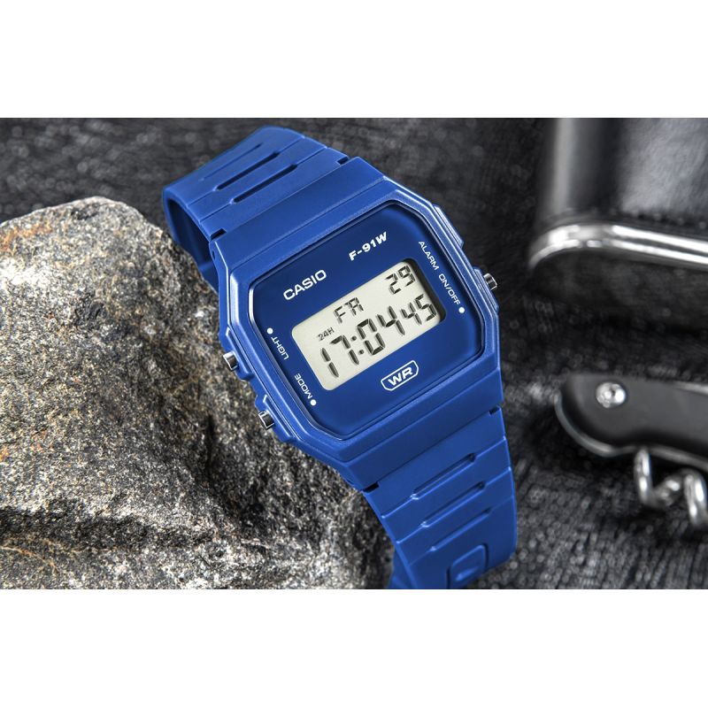The Casio F-91WB-1ADF watch offers a set of classic, practical features that have made this model an icon of simplicity and reliability: a precise digital timepiece with a 24-hour format, a 1/100 second stopwatch with the option of measuring split times, a daily alarm with an hourly time signal, an automatic calendar with the day of the month, an LED backlight (Micro Light) for reading in the dark, a battery life of up to 7 years , Water Resistant against splashes, a 12/24 hour mode , a compact and lightweight plastic construction for comfortable wearing, and a classic retro design with a clear LCD display and a distinctive rectangular case shape, thanks to which the F-91WB-1ADF combines functionality, durability and timeless style in one iconic Casio watch.