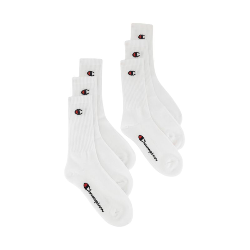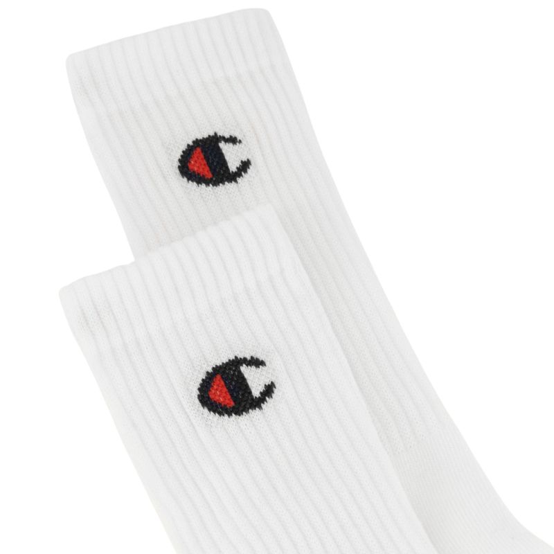 Champion 6-Pack White Socks U20005 WW001 Champion socks are perfect for everyday wear. The cotton-dominant material allows the skin to breathe. The addition of synthetic fibers improves durability and flexibility. The elastic, high cuff prevents pressure and stabilizes the socks. Reinforced toe and heel areas. The package contains 6 pairs of socks. Material: 70% cotton, 28% polyester, 2% elastane
