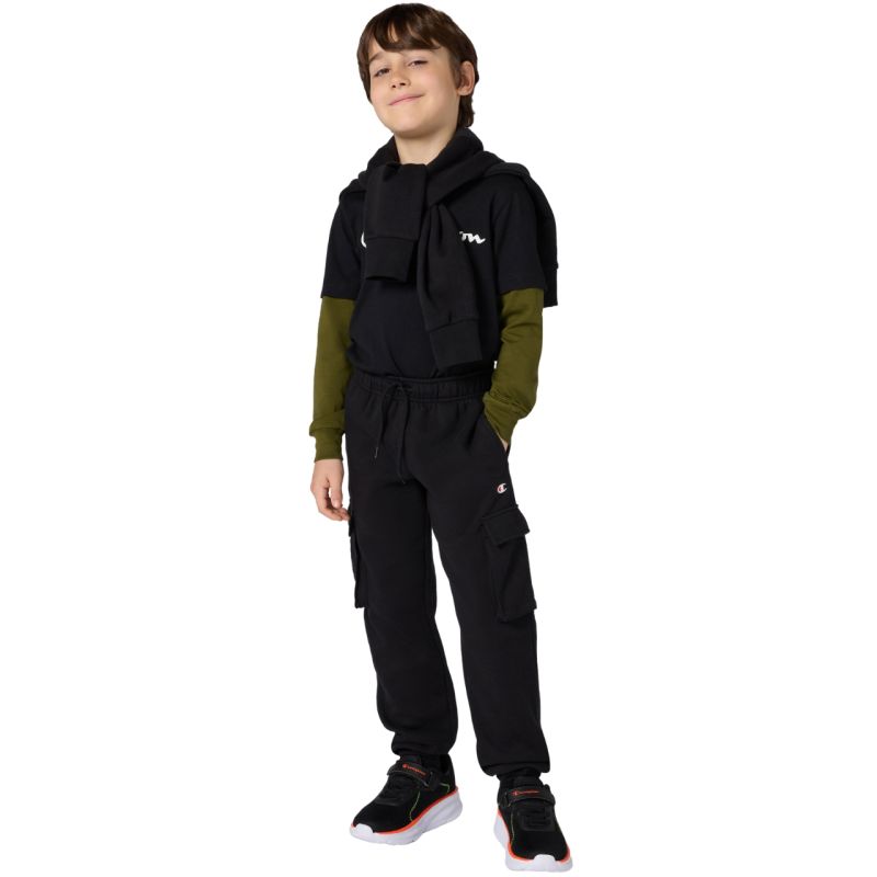 Champion Kids' Trousers Black 307331 KK001 These Champion kids' trousers are perfect for everyday wear. They're lined. They have a regular fit. They feature an elastic waistband with an external drawstring for adjustability. They have ribbed cuffs. They feature open side pockets and two cargo pockets with Velcro closures. Material: 73% cotton, 27% polyester.