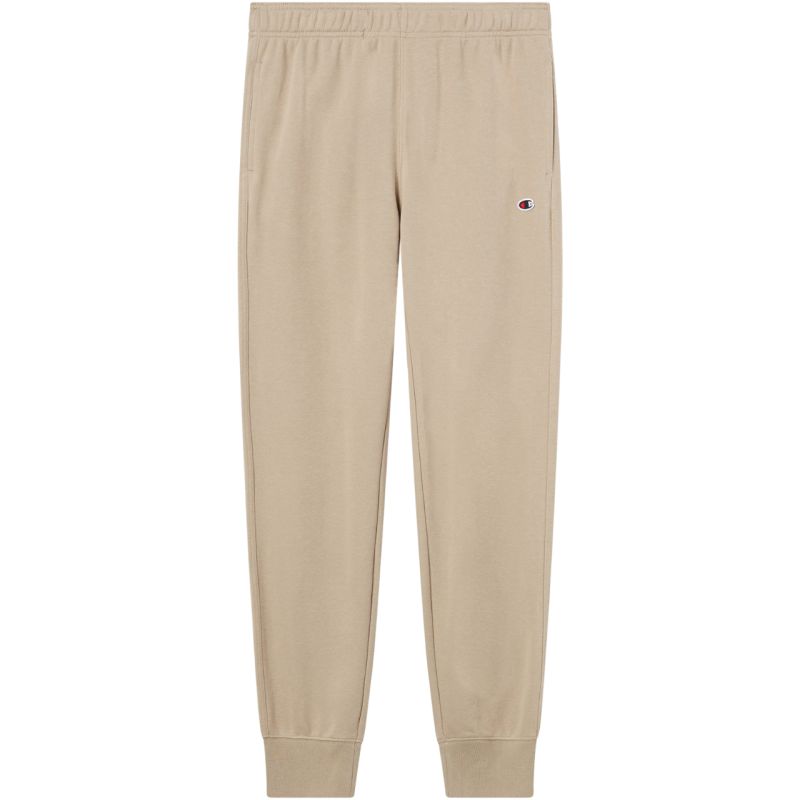 Champion Men's Rib Cuff Pants Beige 220733 MS041 These Champion men's pants are perfect for everyday wear. A small logo patch. The material is ventilated and durable. Elastic waistband. Slim fit with tapered legs. Open side pockets. Material: 69% cotton, 31% polyester
