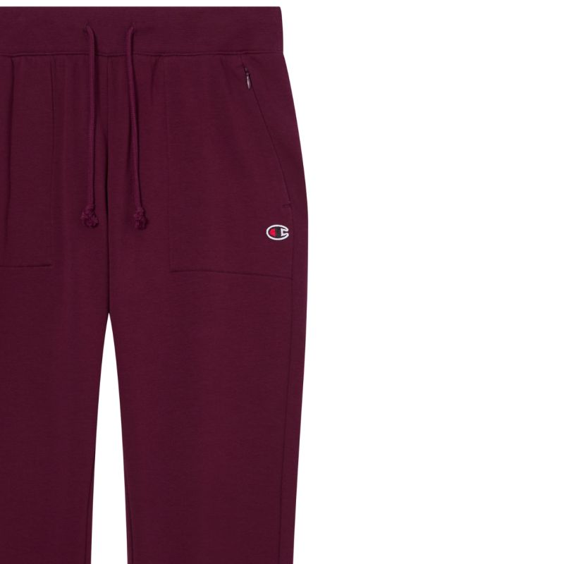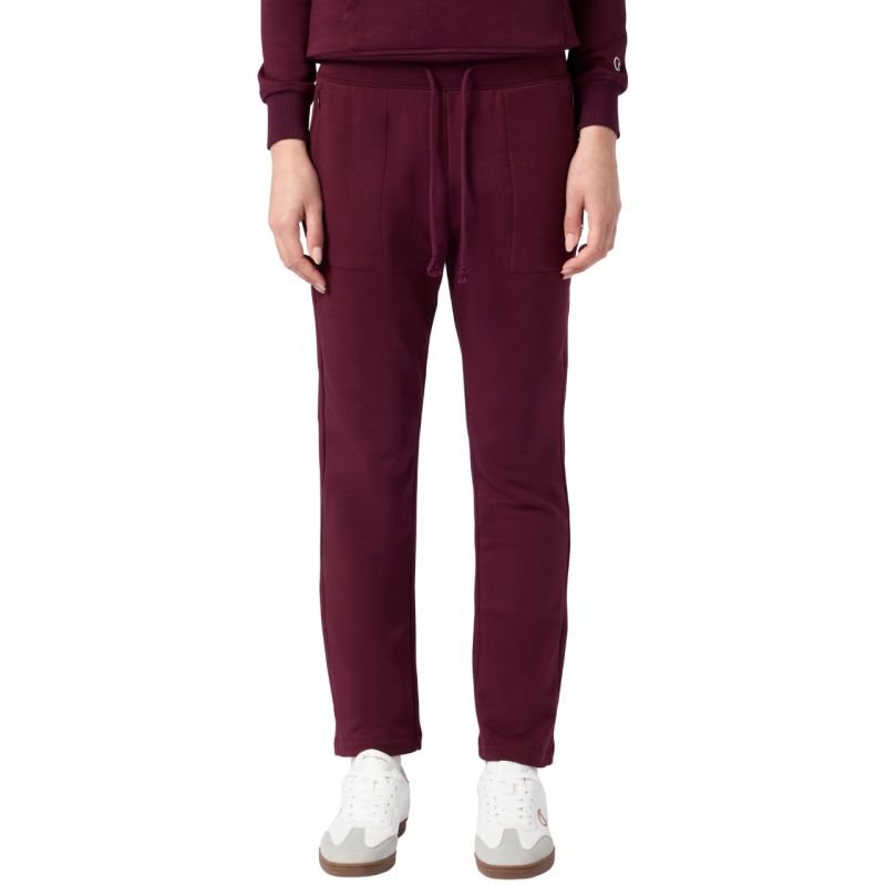 Champion Slim Pants Burgundy 118041 RS522 Women's Champion sweatpants are perfect for everyday wear. Soft knit fabric. Zippered side pockets. No cuffs. Slim fit. Drawstring waist adjustment. Elastic waistband. Material: 80% cotton, 15% polyester, 5% elastane