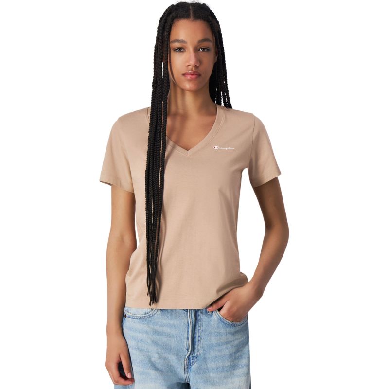 The Champion women's T-shirt is the perfect complement to a capsule wardrobe, providing a multitude of everyday styling options. The ribbed structure of the fabric aesthetically complements the V-neck. Cotton fibers ensure breathability and minimize irritation. The regular fit drapes naturally on the body, ensuring maximum fluidity of movement. A small logo on the chest subtly complements the well-thought-out design.