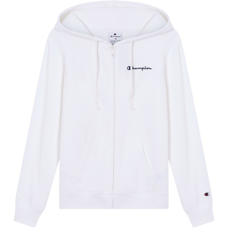 Champion Women's Full Zip Hoodie Sweatshirt White 118406 WW001 This Champion women's sweatshirt is perfect for everyday wear. Cotton is the dominant fabric. Polyester fibers are also included. Slim fit. Full-length zipper. Drawstring adjustable hood. Elastic cuffs and hem. Two open side pockets for small items will also keep your hands warm when needed. Material: 69% cotton, 31% polyester