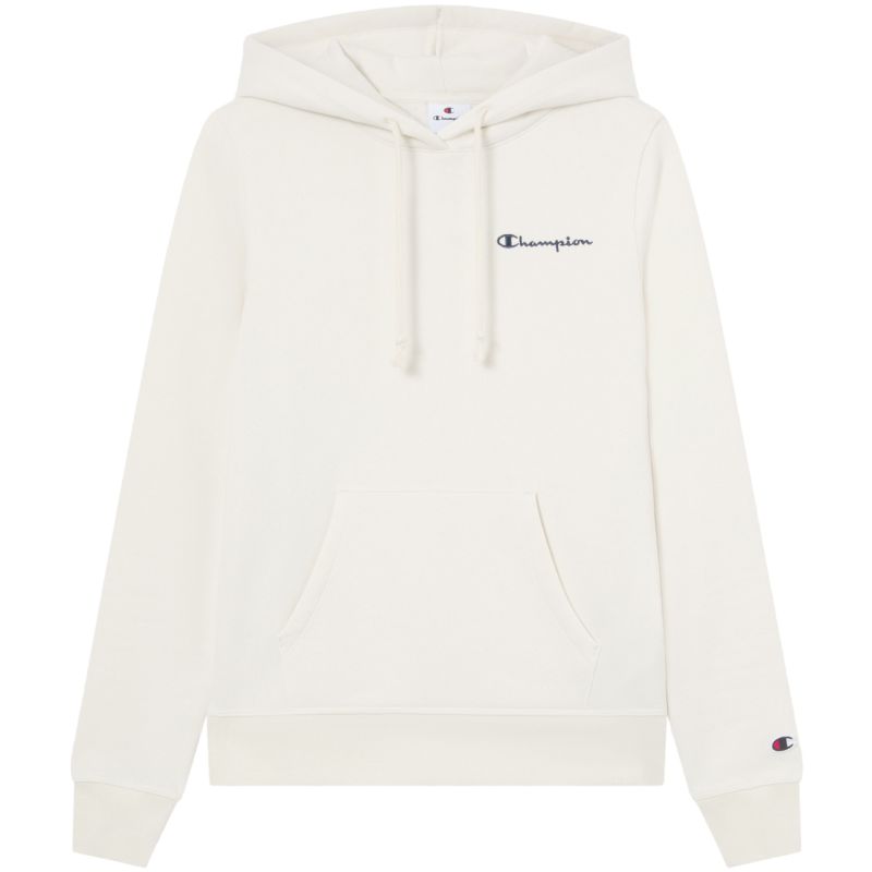 Champion Women's Hooded Sweatshirt, Cream 118403 WW056. This Champion women's sweatshirt is perfect for everyday wear. Slim fit. Ribbed cuffs and hem. Kangaroo pocket. Adjustable hood with drawstring. Subtle logo on the chest. Small logo on the sleeve. Material: 70% cotton, 30% polyester