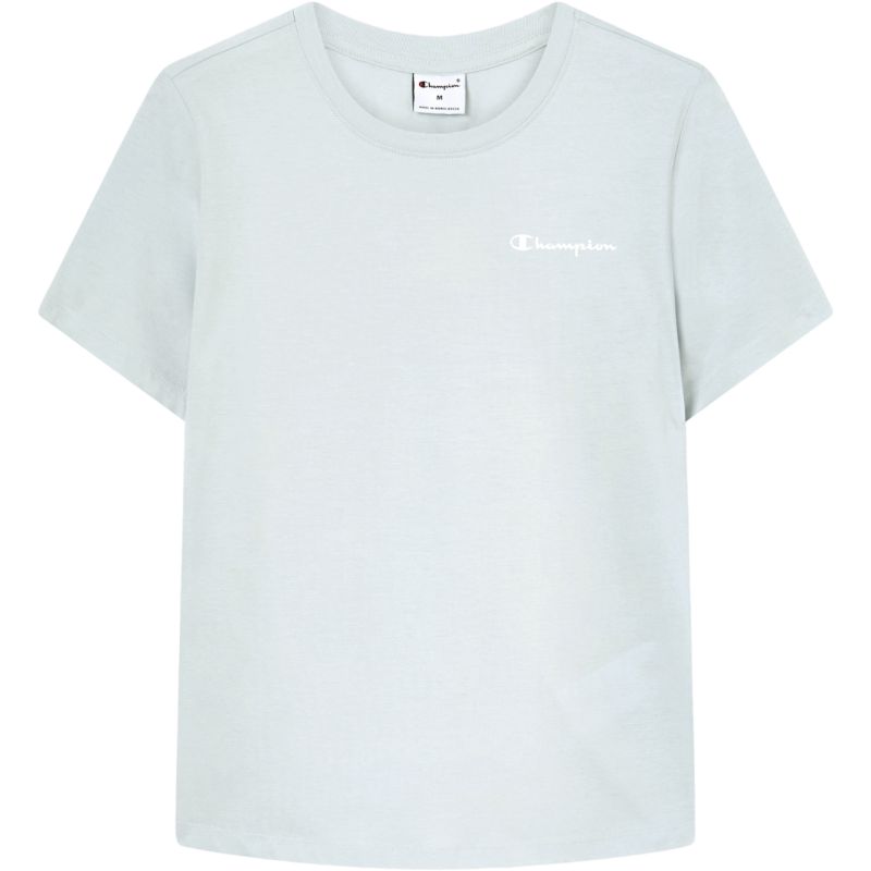 Champion Women's Short Sleeve T-shirt, Light Blue 118408 BS224. This Champion women's T-shirt is perfect for everyday wear. It has a fitted cut. A round neckline. Soft fabric. Material: 100% cotton.