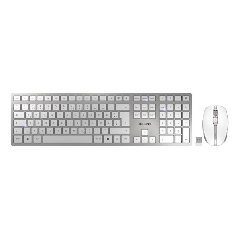CHERRY DW 9100 SLIM Keyboard Mouse Included Universal RF Wireless + Bluetooth QWERTZ German Silver