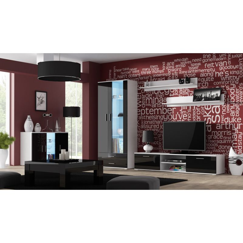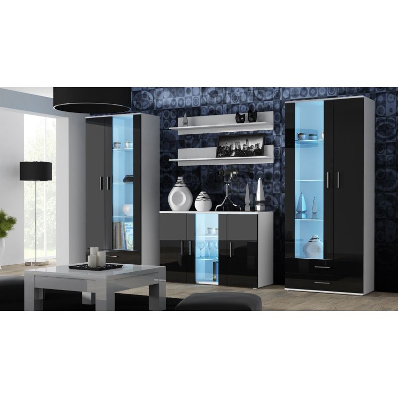 - On the left and right side there are doors with high-gloss fronts, and one shelf inside.