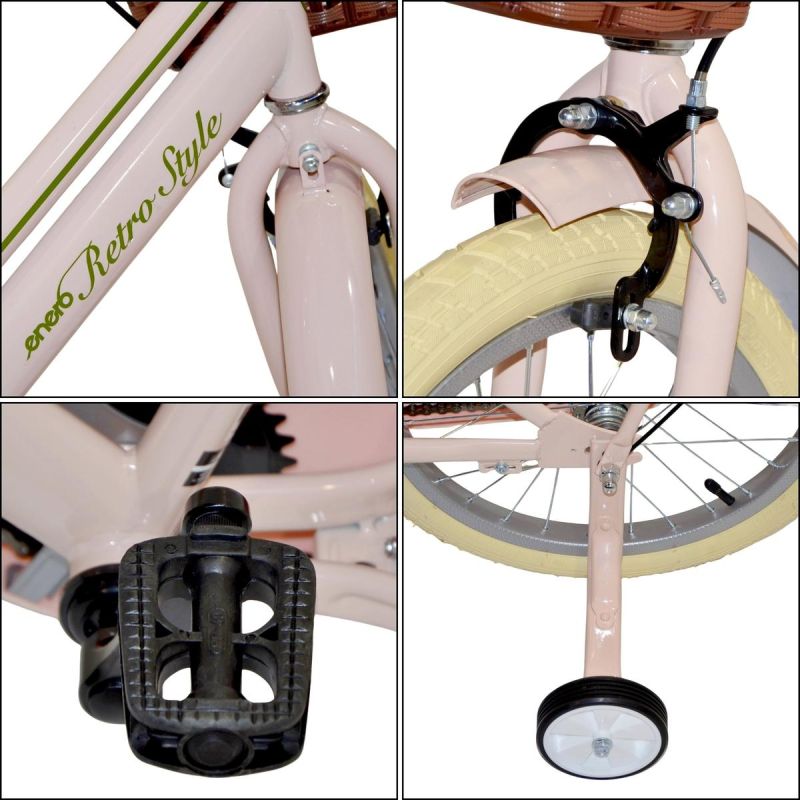 CHILDREN'S BIKE 18 RETRO STYLE PINK ENERO is the perfect combination of retro style, safety and quality – a choice that makes a difference from the first ride!