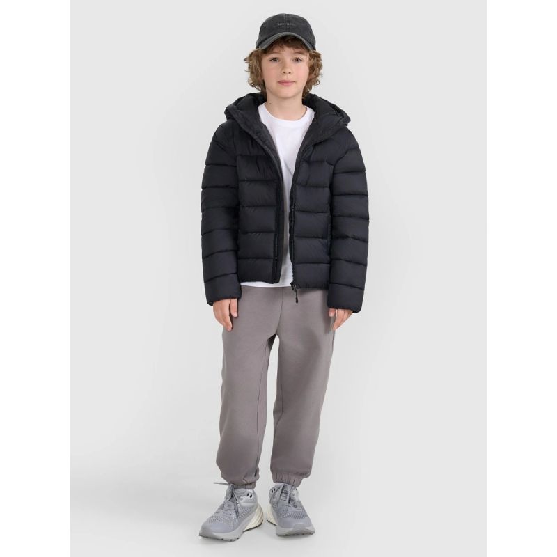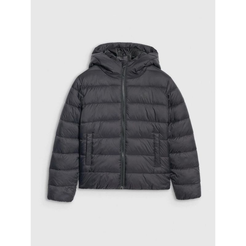 This children's down jacket is a lightweight and comfortable option for the transitional season, providing warmth, wind protection, and everyday comfort . Classic horizontal quilting with lightweight synthetic insulation supported by 4FWarm technology provides adequate insulation without adding bulk, while a water-repellent coating protects against light rain. The regular fit and standard hip length make the jacket suitable for both activity and everyday use, ensuring your child's freedom of movement and comfort.