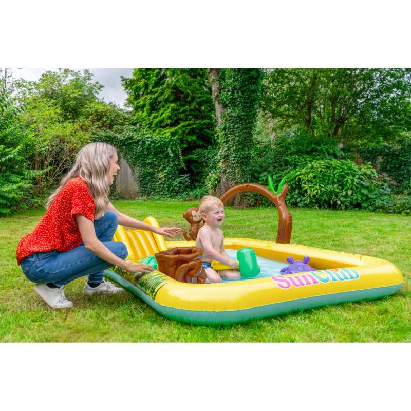 - Equipment: pool, slide, monkey, 1 log, 2 throwing rings, 1 hammer, 1 hippo, 2 ducklings, 1 spoon with net