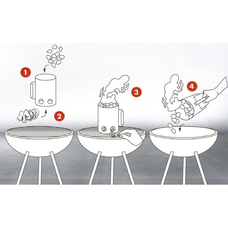 A chimney is a tool used to quickly and efficiently light charcoal or briquettes in a grill. It's lightweight and easy to use, so it's always at hand when lighting a grill or campfire.