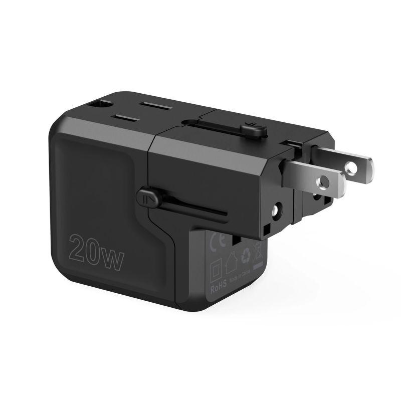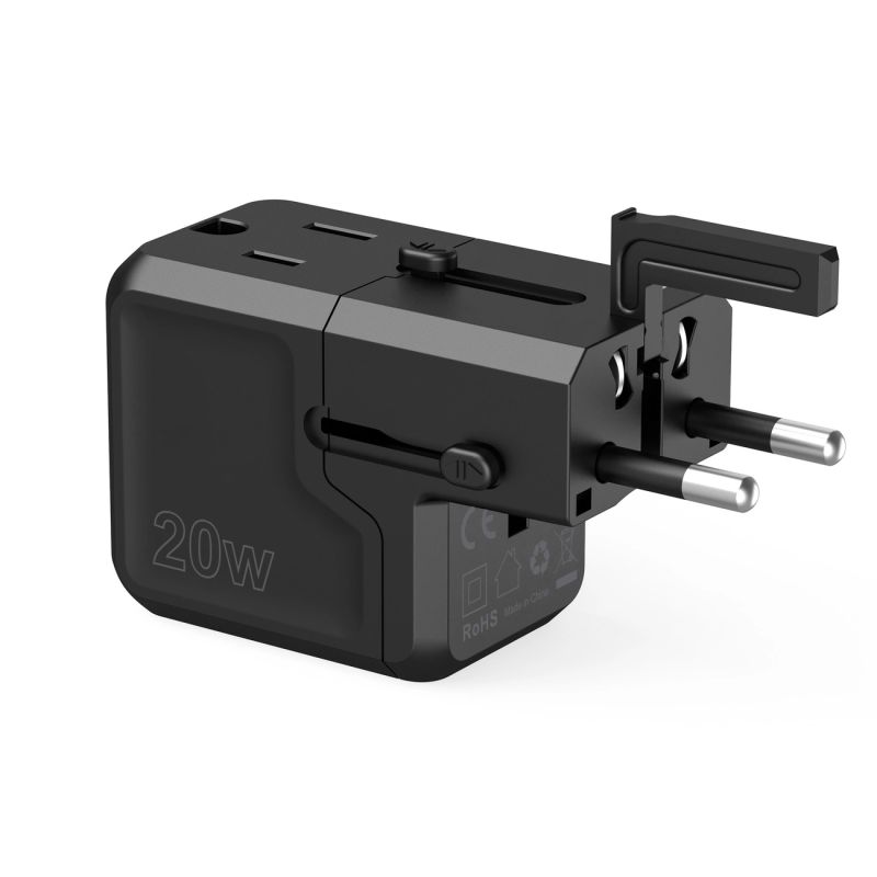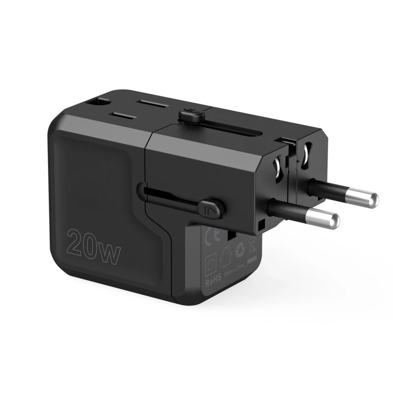 Choetech PD6038 Travel Charger with USB-C and USB-A 20W, with 4 Plugs (USA, EU, UK, AU) - Black