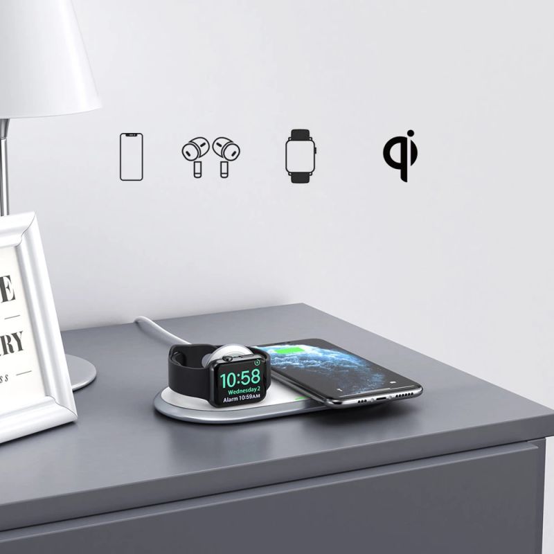- Adapted to many devices, incl. Qi-compatible phones, including iPhone, wireless headphones (including AirPods), and Apple Watch
