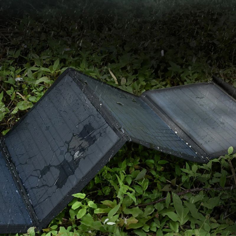 - It will work in various weather conditions and during many adventures - a camping trip, a camping trip or an all-day stay on the beach . The charger has been reinforced with PET and EVA materials, and the panel itself has an IPX4 waterproof level