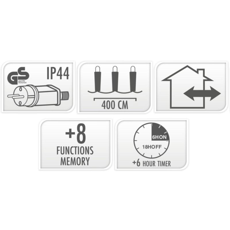 - Garland length approx.: 420 cm with LED diodes + 300 cm cable