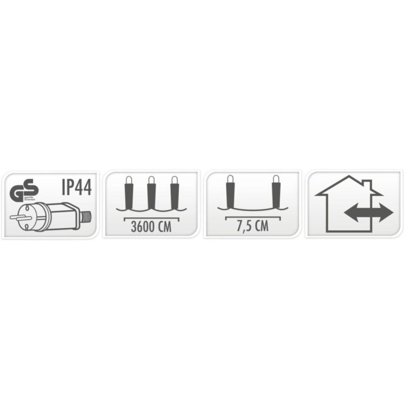 36 meters of lighting with 480 LEDs spaced 7.5 cm apart! One set is enough to illuminate a large Christmas tree, an entire balcony railing, a house facade, or a fence, creating a uniform and dazzling effect.
