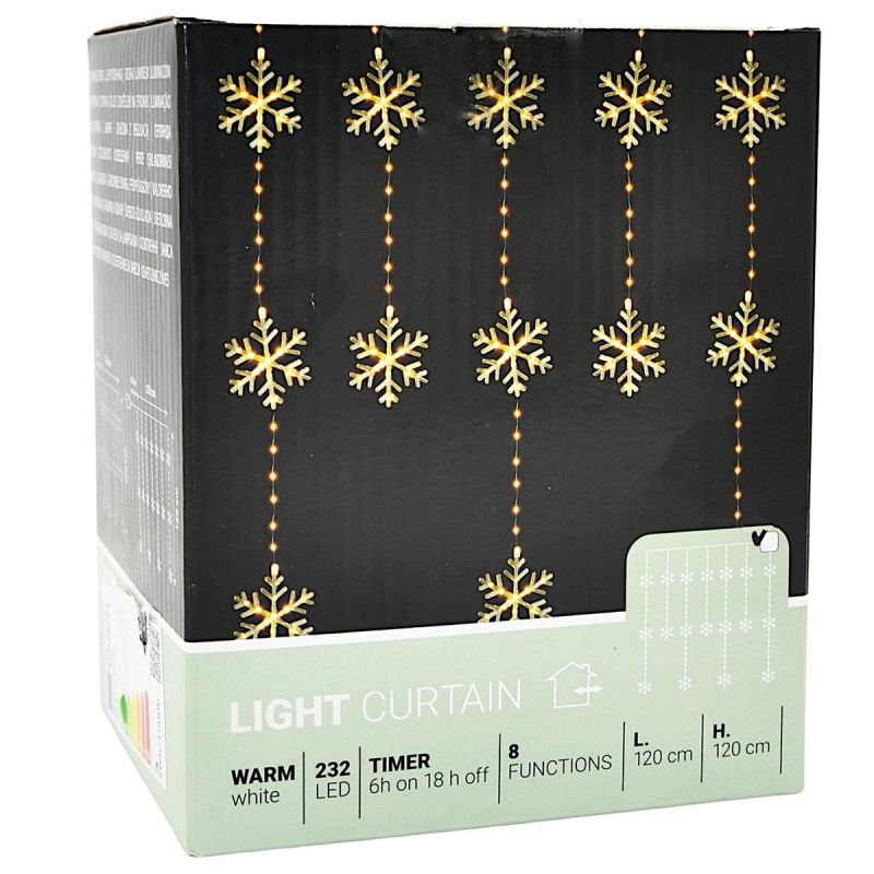 CHRISTMAS TREE LIGHTS LIGHT CURTAIN 120x120 CM 232LED WARM WHITE SNOWFLAKES