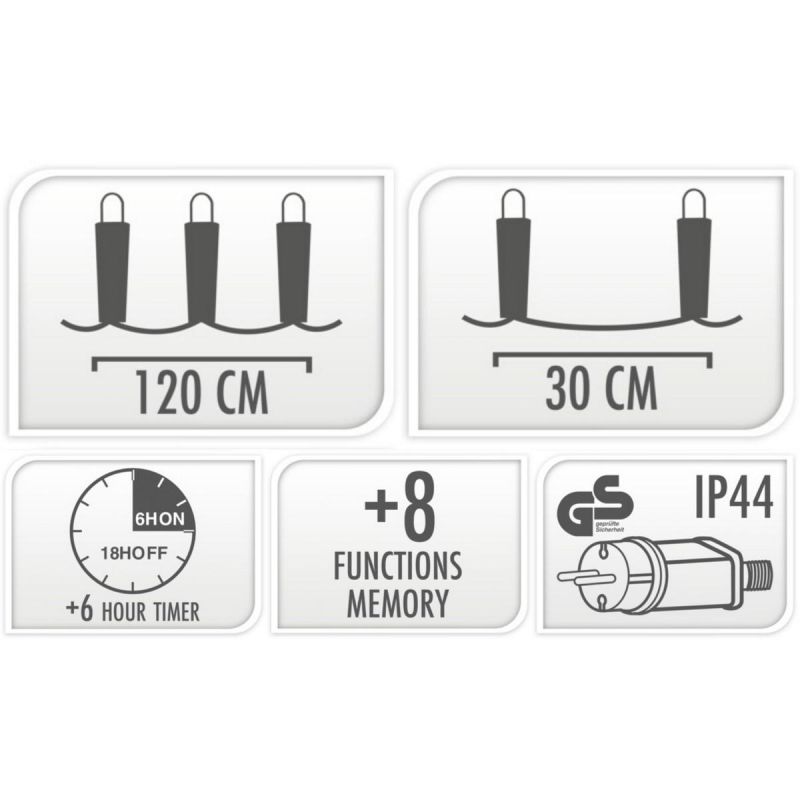 Thanks to its 5-meter cable and integrated 6/18 timer, the curtain lights up whenever you want—no need to turn them on every day. Set it once and enjoy light all season long.