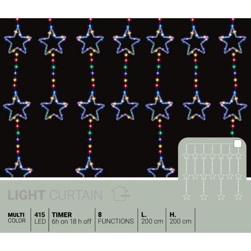 CHRISTMAS TREE LIGHTS LIGHT CURTAIN 200x200 CM 415LED STARS MULTICOLOR