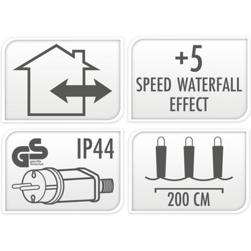 The curtain has 5 different speeds to choose from, allowing you to create a unique and one-of-a-kind decoration. Sequences can be switched using a dedicated button on the power supply.