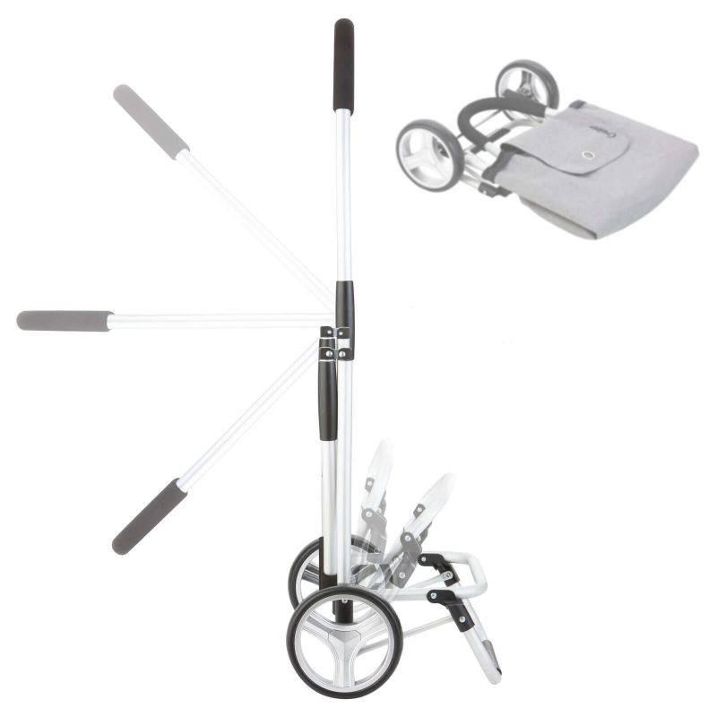 Handles for hanging the stroller on a shopping cart