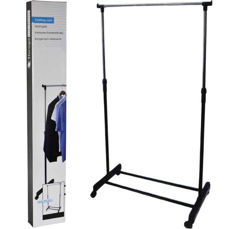The EXCELLENT HOUSEWARE SINGLE CLOTHES HANGER 80x43x90-160 CM allows for convenient clothing storage without the need for a large closet. Its adjustable height allows you to fit shirts, jackets, blazers, or coats, while its wheels make it easy to move wherever you need it. It's a simple way to organize your closet, hallway, office, or teen's room.