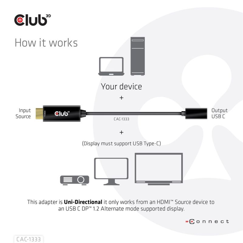 8. CLUB 3D CAC-1333 Cable Adapter 0.22m HDMI Type-A (Standard) USB Type-C Black