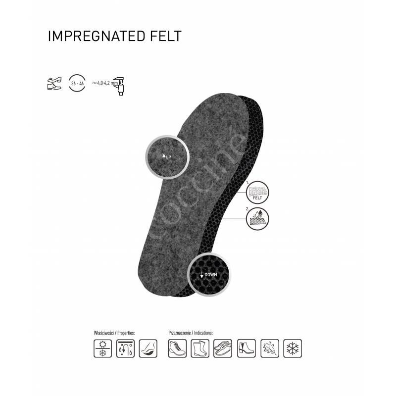 - Inserts made of soft impregnated felt provide excellent insulation against cold and high comfort of use.